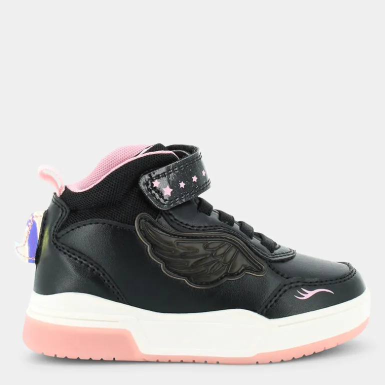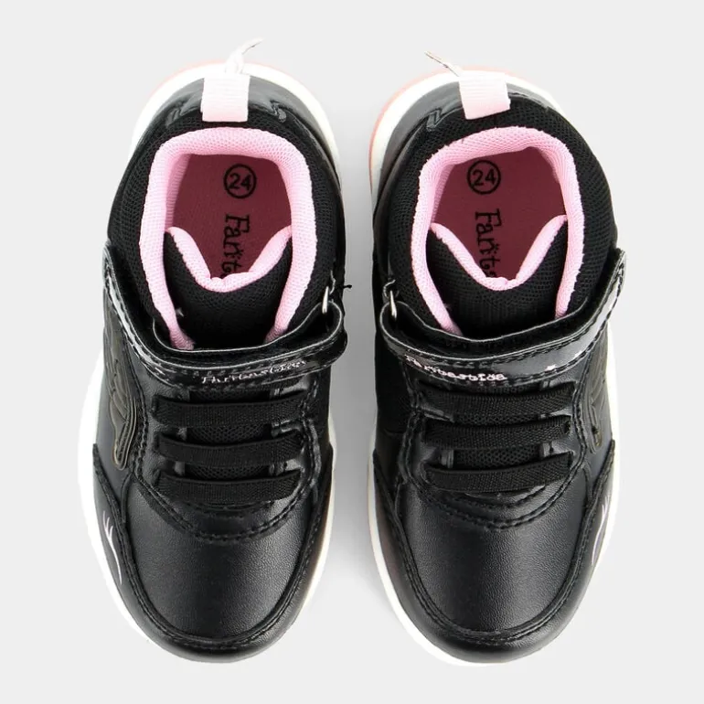 Queste adorabili scarpe primi passi nere del marchio Fantastica, con accenti rosa e bianchi e adorne ali sulla parte laterale, sono la scelta perfetta per accompagnare il tuo bambino e piccolo esploratore durante i primi passi nel mondo. Oltre a essere un’adorabile aggiunta al guardaroba, queste scarpe sportive sono testimonianza di impegno per l’ambiente, poiché appartengono al progetto Eco Amico. Sono realizzate con materiali ecologici, ovvero il poliestere riciclato, che è presente per 100% nella fodera e nel sottopiede. La presenza delle luci sulla suola che si accendono durante la camminata sono un elemento giocoso che crea una scia di magia e divertimento per il bambino. Le sneakers possono essere indossate con un completo casual o con una tutina. In ogni caso, doneranno il massimo comfort al bambino e terranno caldi i piedini.