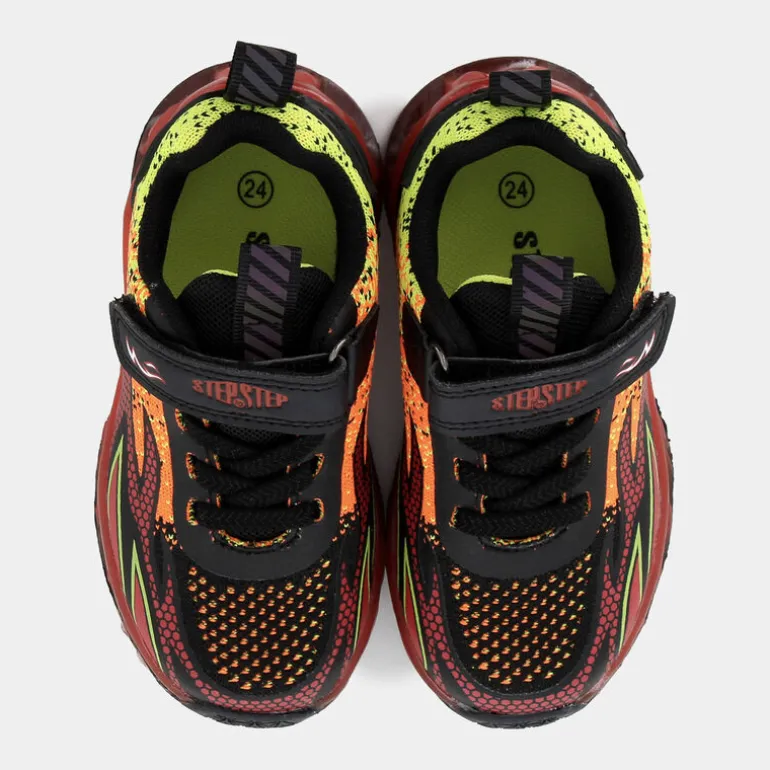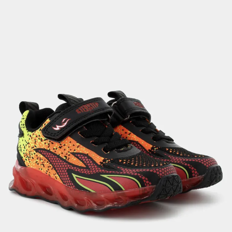 Pratiche e originali, queste sneaker Eco Amico® di Step By Step sono perfette per i primi passi del tuo bambino! Caratterizzate da un design accattivante con fiamme, queste scarpe sportive offrono chiusura in velcro e laccio elastico per una calzata sicura e comoda. La fodera e il sottopiede sono realizzati in PET riciclato, un materiale ecologico che garantisce il massimo comfort. La suola è arricchita da luci integrate che rendono ogni passo divertente e luminoso. Abbina queste sneaker a pantaloni in denim e una felpa colorata per un look casual e alla moda durante il tempo libero del tuo bimbo. Perfette per accompagnarlo nelle sue prime esplorazioni con stile e sicurezza!