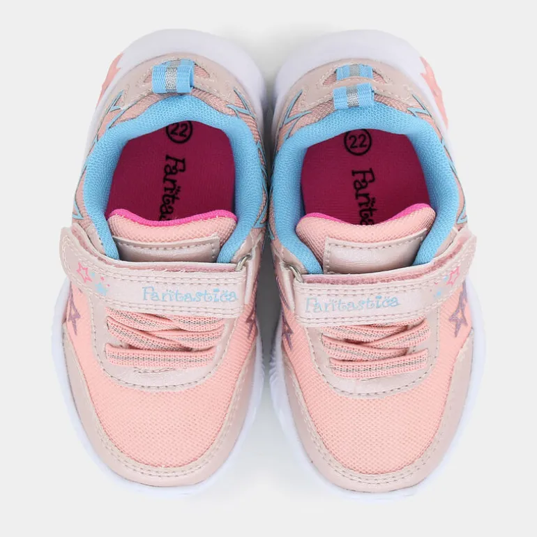 Benvenuti ai primi passi nel mondo con le sneaker Eco Amico® firmate Fantastica. Realizzate pensando al comfort e all’eco-sostenibilità, queste scarpe sono perfette per le piccole avventuriere. La sneaker presenta un pratico sistema di chiusura con velcro e laccio elastico per assicurare una calzata semplice e sicura. La fodera e il sottopiede sono realizzati in PET riciclato, contribuendo a un futuro più verde. La suola, impreziosita da luci, aggiunge un tocco di magia ad ogni passo. Decorate con stelle e brillantini, queste sneaker non passeranno inosservate.Queste sneaker si abbinano perfettamente a un look casual e colorato: jeans e maglietta o un vestitino estivo. Ideali per il tempo libero, trasformano ogni uscita in un’avventura indimenticabile.