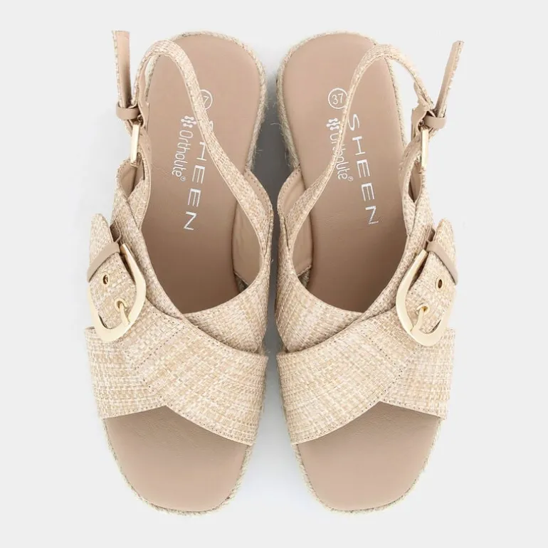 Eleganza e sostenibilità si intrecciano nei sandali Sheen Eco Amico®, un perfetto connubio tra moda e rispetto per l’ambiente. Questi sandali beige incarnano un design contemporaneo grazie alla loro struttura incrociata e al pratico slingback, impreziosito da una fibbia elegante. La tomaia, la fodera e il sottopiede sono realizzati con materiali riciclati, mentre l’inclusione del sottopiede OrthoLite® garantisce un comfort eccezionale durante l’uso quotidiano. Con un tacco di 6.5 cm, aggiungono giusta altezza senza compromettere il comfort. Perfetti per un look casual ma ricercato, si abbinano armoniosamente a un abito estivo fluido o a un paio di jeans cropped, aggiungendo un tocco di raffinatezza eco-sostenibile al tuo guardaroba. La raffia e la corda completano questo accessorio esclusivo, rendendolo unico nel suo genere.