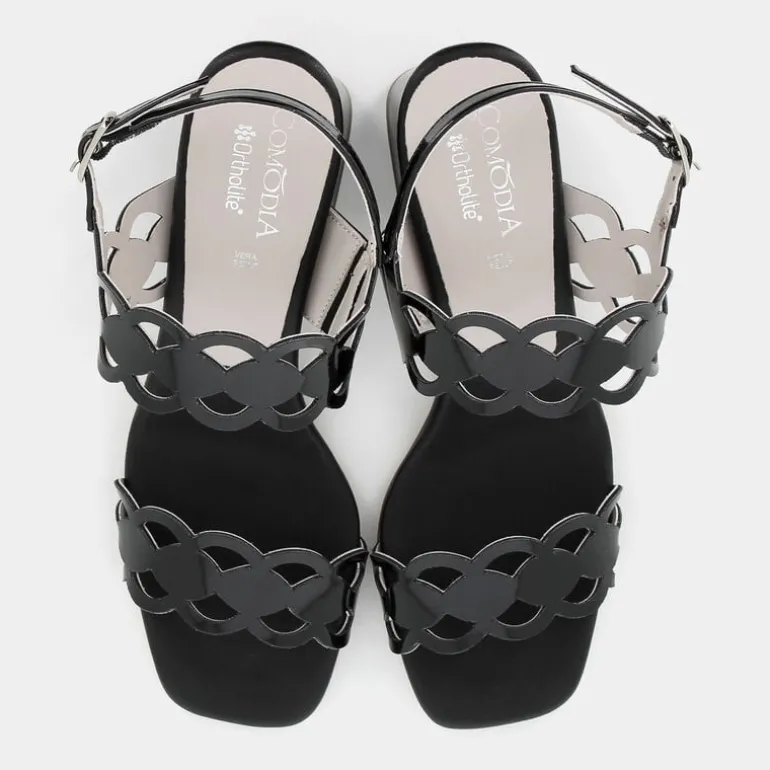 Lasciati conquistare dall’eleganza senza tempo dei sandali Comodia. Questi sandali neri sono l’emblema del perfetto connubio tra stile e comfort, grazie all’altezza del tacco di 6 cm che conferisce un tocco di raffinatezza ad ogni passo. La lavorazione artigianale made in Italy si riflette nei dettagli ricamati e nelle sofisticate forature, mentre la finitura in vernice aggiunge un tocco di lucentezza. La soletta in pelle e materiale sintetico, arricchita dalla tecnologia OrthoLite®, assicura un comfort duraturo. Perfetti per un outfit da sera elegante o per un’occasione formale, i sandali Comodia si abbinano splendidamente a un abito lungo o un completo elegante, rendendo ogni tua uscita un evento speciale.