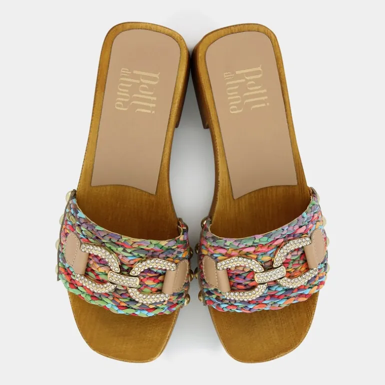 Porta un tocco di classe e originalità al tuo look con questi meravigliosi zoccoli firmati Patti Di Luna. Ideali per le occasioni casual, questi sandali multicolore presentano un design gioiello che cattura l’attenzione. Il tacco di 5.5 cm aggiunge eleganza senza compromettere il comfort. Realizzati con materiali di alta qualità, sono una vera celebrazione del Made in Italy. Perfetti per una passeggiata in città o una serata glamour, questi sandali si abbinano splendidamente con un abito estivo leggero o dei jeans alla caviglia. Completa il tuo outfit con accessori dorati per un tocco davvero sofisticato. Lasciati conquistare dalla magia di Patti Di Luna e fai brillare ogni tuo passo!