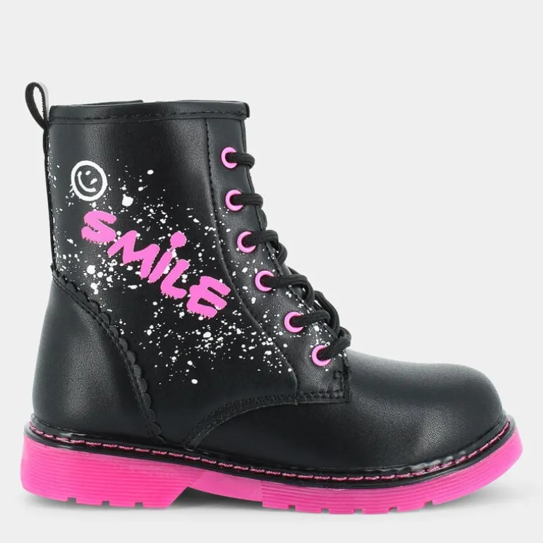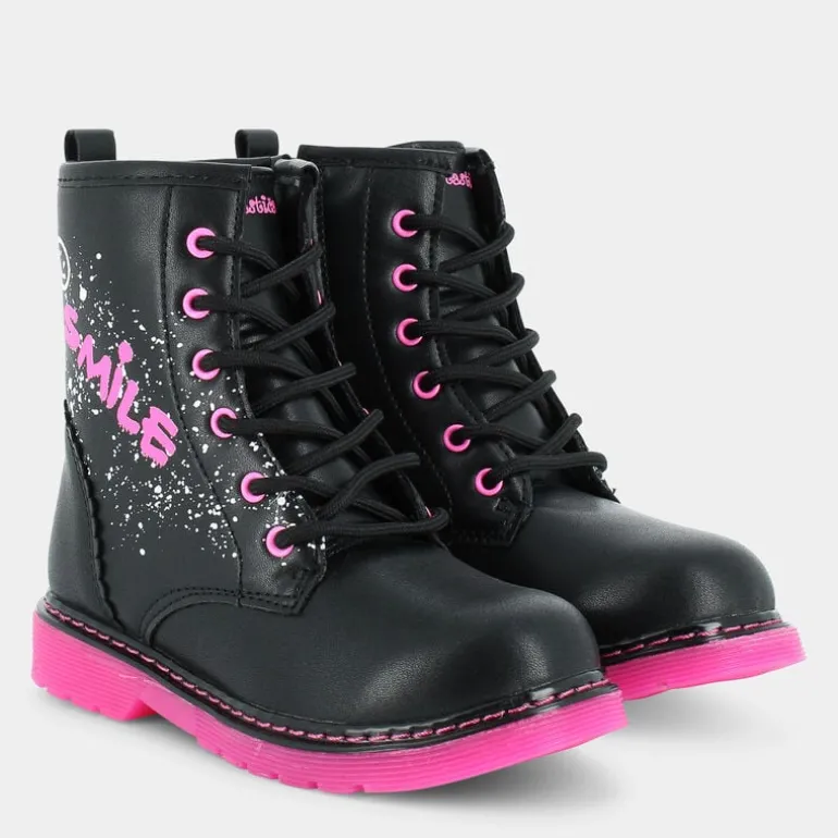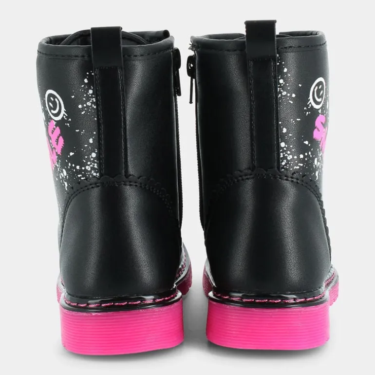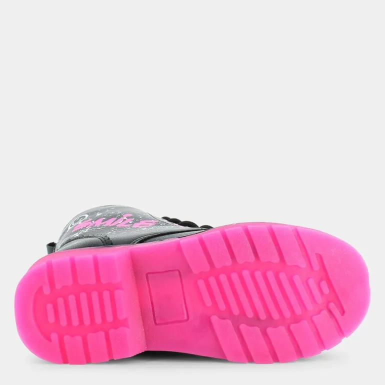 Gli stivaletti per bambina del marchio Fantastica non passano inosservati! Grintosi e femminili, questi stivaletti sono la scelta perfetta per chi vuole essere alla moda ma sempre attento all’ambiente, poiché realizzati usando materiali riciclati. Questo modello infatti fa parte del progetto Ecoamico, che si distingue per il suo impegno nel realizzare calzature di qualità facendo un uso consapevole dei materiali per contribuire alla salvaguardia dell’ambiente. La fodera e il sottopiede sono stati realizzati al 100% da PET riciclato. Questi stivaletti neri sono di tendenza e hanno carattere, grazie ai dettagli fucsia e bianchi sulla tomaia stile graffiti e una suola fucsia carrarmato antiscivolo in grado di offrire un’aderenza eccezionale. Super confortevoli e ideali per occasioni casual e tante avventure!
