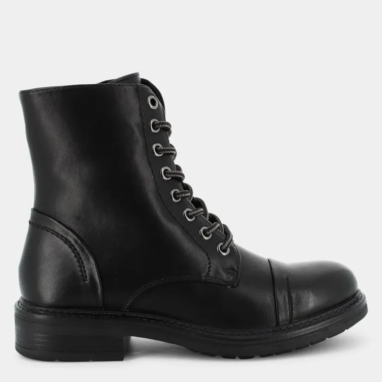 Pratici e versatili, questi scarponcini alla moda da donna firmati Sheen sono la soluzione ideale per essere al passo con i tempi e nello stesso tempo salvaguardare la natura. Queste scarpe, infatti, fanno parte del progetto Eco Amico poiché alcune componenti sono realizzate al 100% in PET riciclato e certificato (fodera, sottopiede e tomaia). La linea slanciata di queste scarpe regala alla figura un certo fascino, in particolare la caviglia appare sottile e la gamba più lunga. Gli scarponcini di colore nero sono dotate di lacci regolabili che garantiscono stabilità al piede durante la camminata. Le calzature Sheen sono perfette con abiti casual composti da pantaloni a palazzo e camicia ma possono essere indossate anche con tantissimi altri abiti come, per esempio jeans skinny e felpa per un aspetto più giovanile.