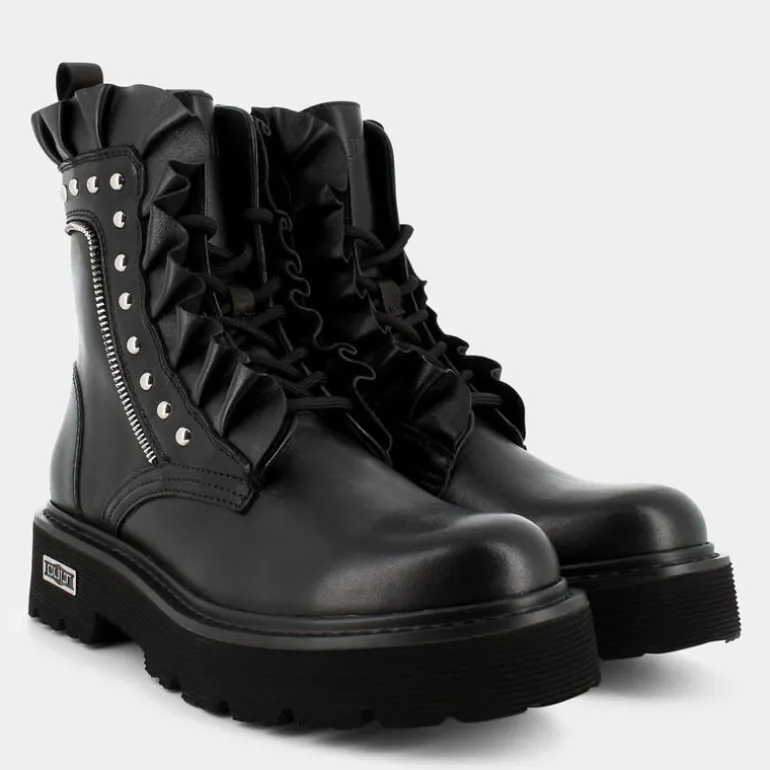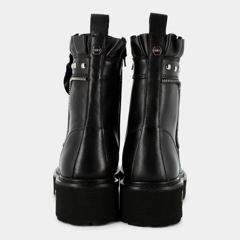 Lasciati sedurre dai dettagli curati degli scarponcini Cult, perfetti per chi ama il look casual con un tocco di eleganza. Realizzati con un esterno in pelle nera di alta qualità, questi scarponcini assicurano resistenza e stile senza tempo. L’interno combina pelle e tessuto per offrire comfort e traspirabilità, mentre la soletta in pelle garantisce un’ulteriore sensazione di morbidezza a ogni passo. I dettagli di smerlature e l’accessorio decorativo aggiungono un tocco distintivo e di carattere al design esclusivo. Ideali da abbinare a un outfit casual, questi scarponcini si sposano alla perfezione con un paio di jeans slim e un maglione oversize o una giacca di pelle per un look urban chic indimenticabile.