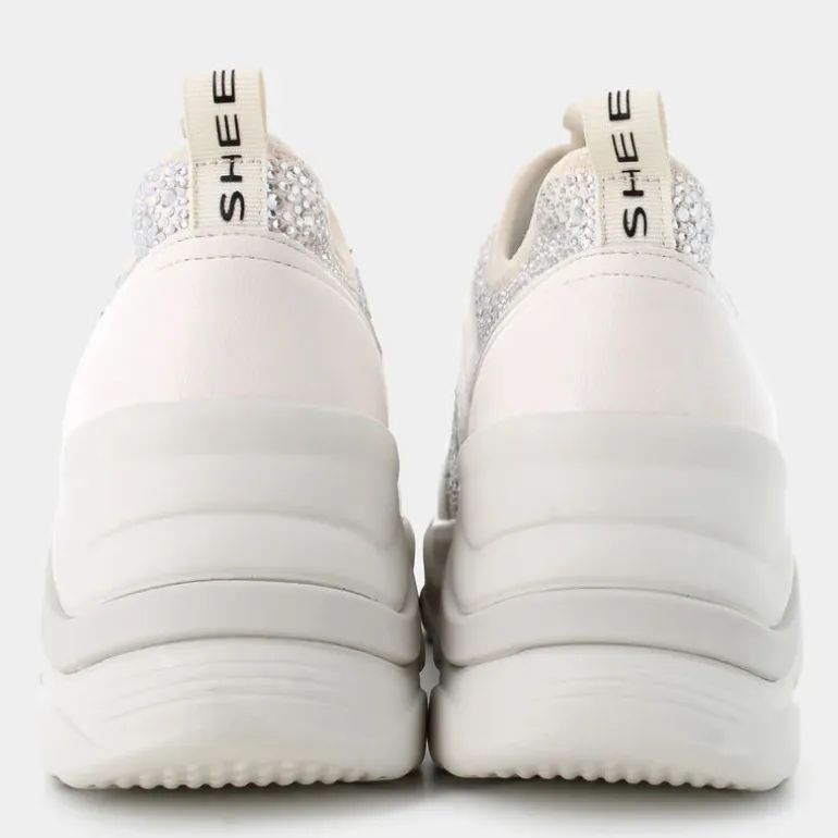 Eleva il tuo stile quotidiano con le sneakers SHEEN in beige. Queste scarpe chunky di tendenza offrono sia un design alla moda grazie agli strass, sia un comfort senza pari con un tacco a zeppa di 7.5 cm. Realizzate con materiali riciclati di alta qualità, quali PET per la fodera e il sottopiede OrthoLite®, queste sneakers sono parte della linea Eco Amico®. La tomaia e i lacci sono anch’essi ecosostenibili, perfetti per chi desidera fare una scelta consapevole senza rinunciare al glamour. L’allacciatura rapida consente di indossarle con facilità. Abbinele con un paio di jeans skinny e una t-shirt casual per un look rilassato, oppure con una gonna midi e una blusa elegante per un outfit più sofisticato.