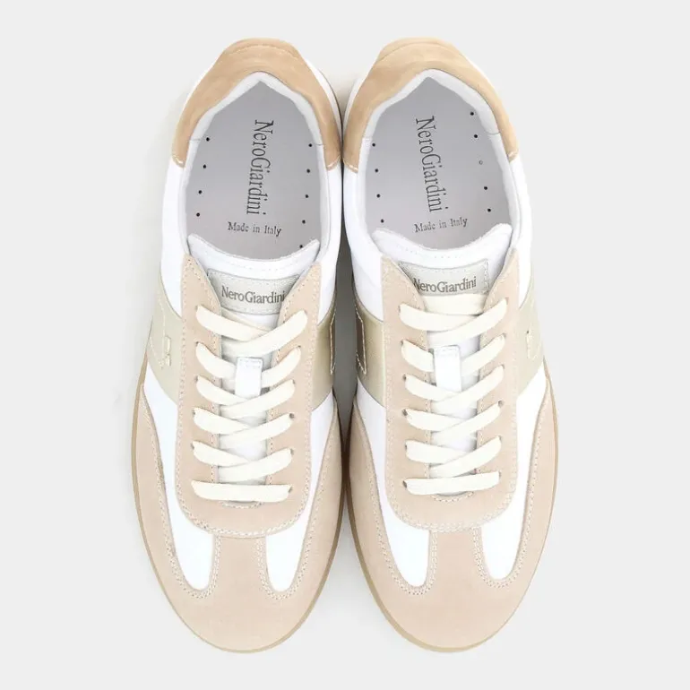 Le sneakers Nero Giardini in beige rappresentano l’eccellenza italiana nel casual chic. Realizzate interamente in pelle pregiata, offrono comfort e durata. Il loro design con zeppa è perfetto per chi cerca un tocco di altezza senza rinunciare alla comodità. La suola color miele conferisce un tocco di originalità e le rende un must-have per seguire le tendenze del momento. La fattura made in Italy assicura qualità e stile ineguagliabili. Queste sneakers si abbinano perfettamente con jeans skinny, una t-shirt basica e una giacca in pelle per un look urbano e sofisticato. Ideali anche con una gonna lunga e un maglione oversize per un tocco di femminilità casual. Un accessorio versatile per ogni guardaroba.