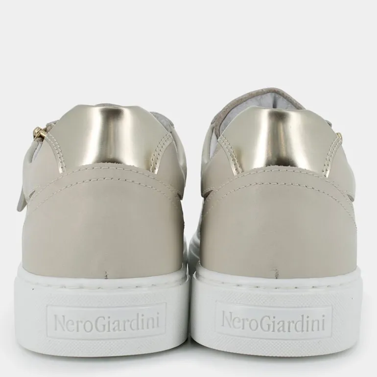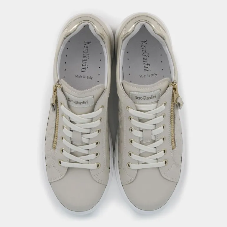 Sfoggia il tuo stile con queste eleganti sneakers Nero Giardini. Realizzate in pregiata pelle beige e prodotte in Italia, sono il connubio perfetto tra eleganza e comfort. Ideali per un look casual, queste sneakers sfoggiano un dettaglio laminato che aggiunge un tocco di luminosità e una pratica zip per una calzata agevole. La zeppa offre un’altezza discreta, mantenendo comodità e stabilità. Interno e soletta, anch’essi in pelle, assicurano morbidezza e traspirabilità. Perfette per il tuo abbigliamento quotidiano, si abbinano splendidamente con jeans skinny e una giacca in pelle per un look urban chic, o con un abito casual per un outfit più femminile. Indossa il meglio del comfort con uno stile ineguagliabile!