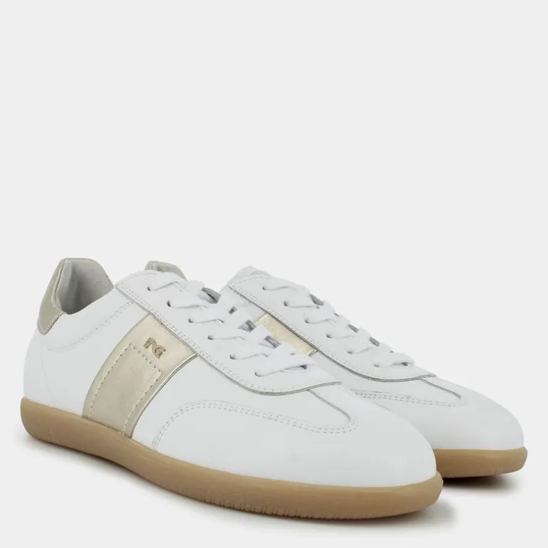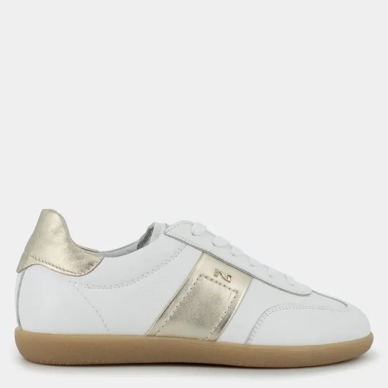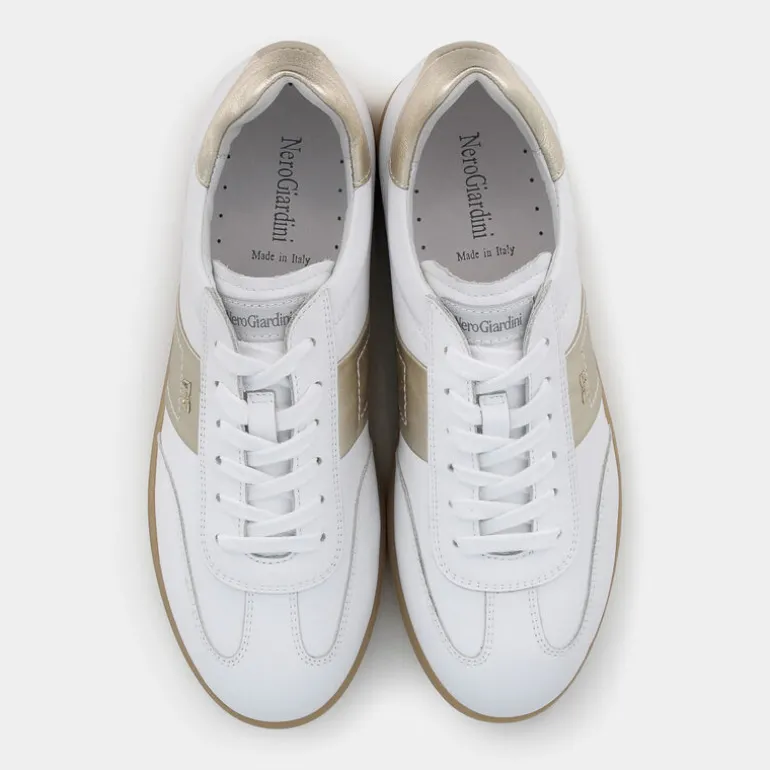 Eleva il tuo stile quotidiano con queste sneakers da donna firmate Nero Giardini, simbolo di classe e tendenza. Realizzate interamente in pelle di alta qualità, offrono un comfort impeccabile grazie alla morbida fodera interna e soletta in pelle. Il design minimalista in un elegante bianco aggiunto al dettaglio della suola color miele le rende perfette per il look di ogni giorno. Ideali per le avventure urbane, queste sneakers con zeppa sono un must-have per un look moderno e raffinato. Abbinale a un paio di jeans strappati e una t-shirt oversize per un look casual urbano, oppure opta per un abito sportivo per un contrasto elegante. Prova queste sneakers e vivi il fascino del Made in Italy con stile e comfort.