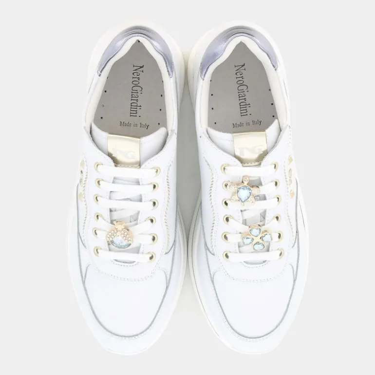 Eleganza casual e comfort assoluto si uniscono nelle sneakers bianche di Nero Giardini. Realizzate al 100% in pelle, queste scarpe non solo esaltano il tuo stile, ma garantiscono una qualità superiore grazie alla maestria artigianale tipica del made in Italy. La loro piattaforma running ti offre il giusto supporto per affrontare ogni giornata con energia e comodità, mentre la zeppa aggiunge un tocco di femminilità. Perfette per un look casual, queste sneakers si abbinano splendidamente a jeans aderenti, gonne midi o pantaloni chino per un appuntamento in città o una passeggiata rilassante. Esprimi il tuo stile con queste sneakers che rappresentano l’equilibrio perfetto tra moda e funzionalità.