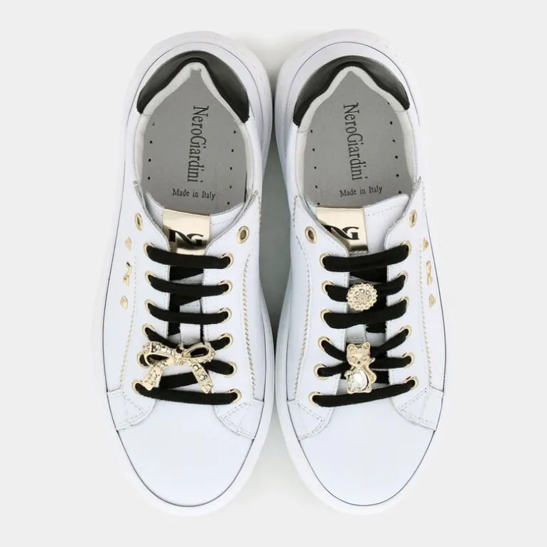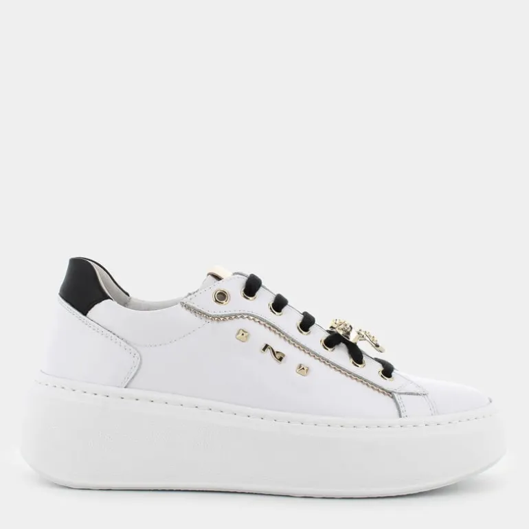 Immergiti nello stile senza tempo delle sneakers Nero Giardini bianche, un must-have del guardaroba casual femminile. Realizzate con cura in Italia, queste sneakers sono caratterizzate da un esterno e interno in pelle di alta qualità, che garantiscono comfort e durata. Il fondo cassetta chunky aggiunge un tocco contemporaneo e distintivo, mentre la zeppa integrata dona un leggero rialzo, perfetto per chi ricerca stile e praticità. Queste sneakers si abbinano perfettamente con un paio di jeans denim cropped, una camicetta in lino e una giacca di pelle, creando un look informale ma chic. Completa l’outfit con accessori metallici per un tocco di personalità in più. Scegli un look che non passa inosservato con Nero Giardini!
