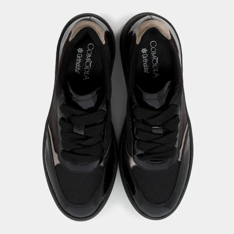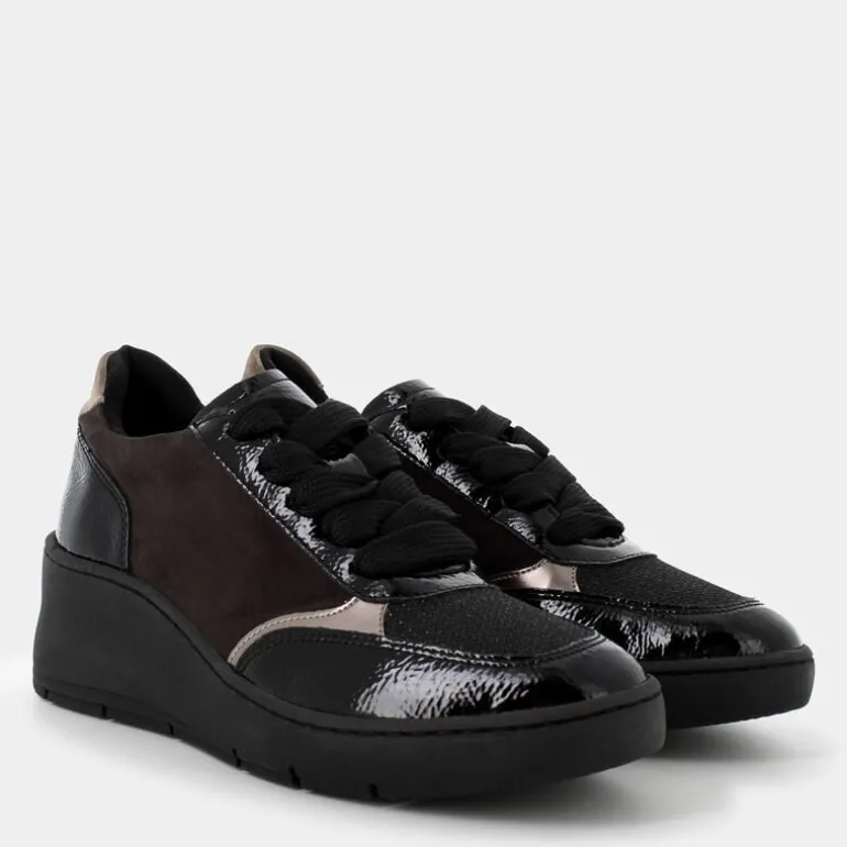 Scopri l’eleganza contemporanea delle sneakers con zeppa firmate Comodia. Queste scarpe uniscono stile e comfort grazie alla zeppa di 5 cm che slancia la figura, garantendo al contempo un appoggio comodo. Realizzate in un sofisticato mix di materiale sintetico e tessuto, queste sneakers bicolore presentano dettagli glitter e scamosciati per un tocco di glamour. Il sottopiede in OrthoLite® assicura una calzata confortevole, mentre l’interno in tessuto offre una piacevole sensazione di morbidezza. Perfette per una serata fuori o per un look casual chic, abbinale a un paio di pantaloni skinny e una giacca elegante per un outfit che non passa inosservato. Rendi ogni tuo passo un momento di stile con le sneakers Comodia.