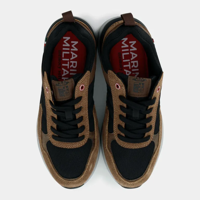 Osserva queste sneakers MARINA MILITARE, perfette per aggiungere un tocco di stile al tuo guardaroba casual. Realizzate con materiali misti come pelle, tessuto e sintetico, queste sneakers offrono una combinazione ideale di comfort e durata. L’innovativo sottopiede in memory foam garantisce un comfort ineguagliabile, adattandosi perfettamente alla forma del piede. Queste sneakers marroni rappresentano una scelta versatile, ideale per un’ampia gamma di outfit casual. Indossale con un paio di jeans e una t-shirt per un look rilassato, oppure abbinale a un pantalone chino e una camicia per un look smart-casual. Con queste sneakers ai piedi, sarai sempre all’insegna dello stile e del comfort, qualunque sia l’occasione. Non lasciarti sfuggire questo must-have!