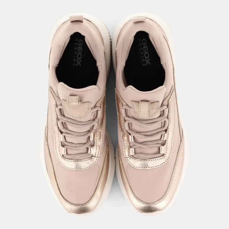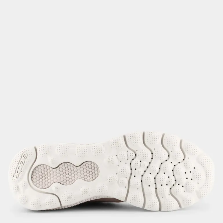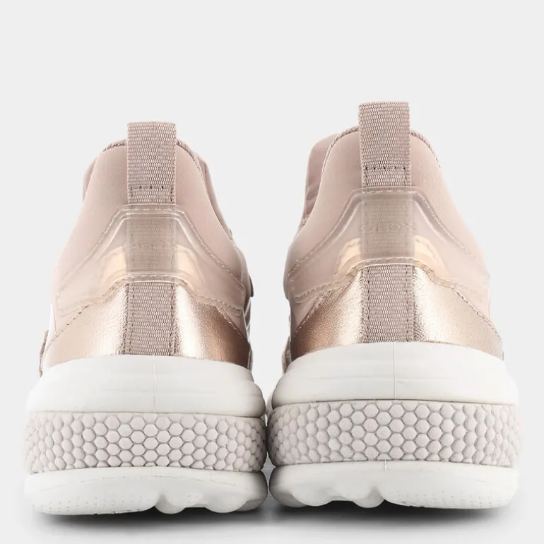 Le sneakers alla moda firmate dal marchio Geox sono caratterizzate da uno stile casual e romantico e sono perfette per essere indossate soprattutto di giorno. Grazie alla speciale suola Spherica e al suo potere ammortizzante e traspirante, queste scarpe risultano confortevoli e sicure anche dopo un utilizzo prolungato. Il design delle sneakers è composto da punta a mandorla, tomaia pannellata con inserti dalla finitura metallizzata, impunture tono su tono, chiusura frontale con lacci tubolari elasticizzati, linguetta imbottita, tomaia in tessuto beige, suola in gomma con inserto texturizzato e zeppa di 4 cm, doppia linguetta pull-on ed imbottitura alla caviglia. Queste scarpe si adattano bene ad outfit differenti e sono ideali sia per il lavoro, sia per la vita in città.