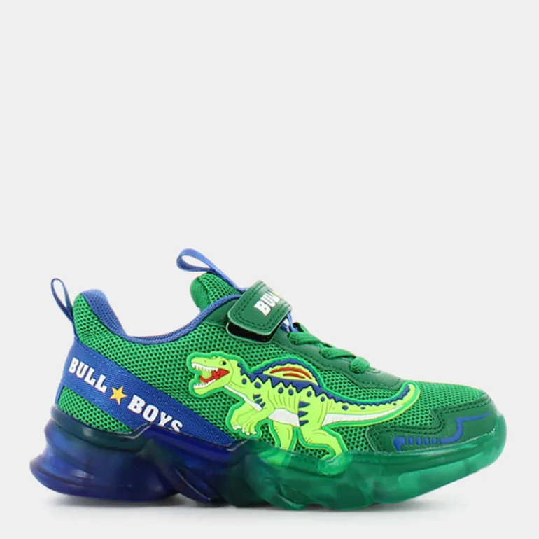 Con i loro colori sgargianti e le linee decise, queste scarpe sportive per bambini a marchio Bull Boys sono la scelta giusta per chi vuole farsi notare senza rinunciare alla comodità . La linea di calzature per chi ama i dinosauri presenta una caratteristica decorazione applicata sulla zona laterale, in questo caso a forma di spinosauro. La Bull Boys è un’azienda attenta alle soluzioni sostenibili e a processi di produzione che limitino l’impatto ecologico, e questa scarpa non fa eccezione. La scelta dei materiali è in linea con l’idea di offrire, in un unico prodotto, una soluzione versatile e adatta per ogni occasione. Con una tomaia in sintetico e tessuto e una suola realizzata in materiali compatti, il modello garantisce resistenza e durata nel tempo. La soletta e la fodera, in tessuto, regalano morbidezza e comodità , e rendono questa scarpa perfetta per chi pratica sport o è sempre in movimento.