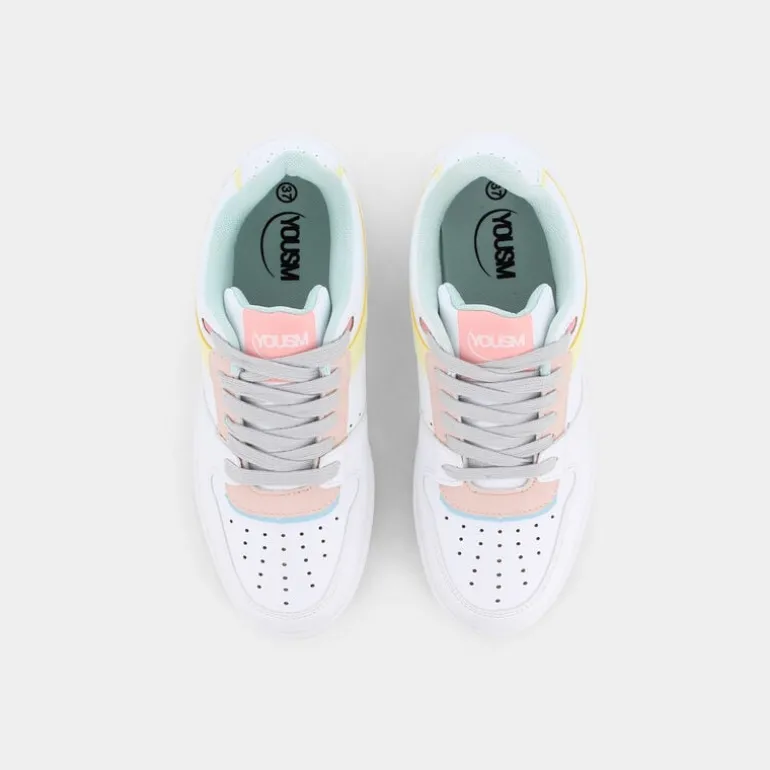 Le sneakers da donna YOUSM nella versione multicolor con colori pastello sono un modello di sneakers versatili che si abbinano a qualsiasi tipo di look dallo sportivo al casual. Queste sneakers sono dotate di una tomaia traspirante che garantisce comfort e traspirabilità per i piedi. Il sistema di chiusura è a lacci, che permette di regolare perfettamente la calzata. La suola in gomma flessibile e antiscivolo è ideale per camminare in sicurezza senza rinunciare al comfort. Le sneakers da donna YOUSM rientrano nei prodotti "ecoamico" in quanto la fodera interna e il sottopiede sono realizzi in materiali al 100% riciclati e certificati, che garantiscono la riduzione dell’impatto ambientale anche durante il processo di produzione.