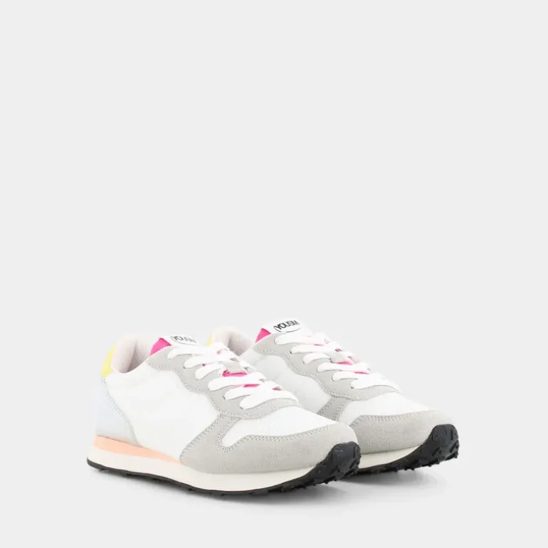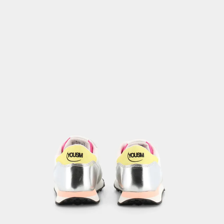 Le sneakers da donna YOUSM nella variante colore bianco hanno uno stile slanciato e sportivo, perfetto per outfit casual e sportivi. I toni della tomaia bianca impreziosita da dettagli argento e fucsia la rendono versatile e facile da abbinare. La tomaia è realizzata in tessuto e effetto scamosciato. La chiusura a lacci regolabili è pensata per una perfetta adattabilità al piede. La suola ammortizzante garantisce il massimo comfort, mentre la fodera e il sottopiede, realizzati con materiali al 100% riciclati, la rendono un prodotto ecoamico.