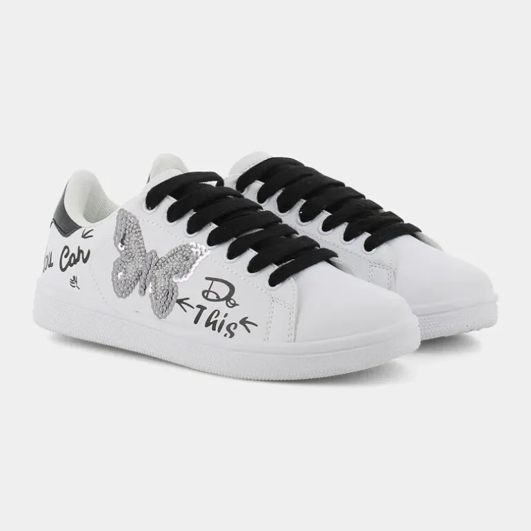Questa sneaker alla moda e dal look essenziale, impreziosita da decorazioni e disegni sulla tomaia per dare stile ad ogni look, ha la fodera e il sottopiede realizzati in materiali 100%riciclati, un piccolo gesto per pulire il mondo.