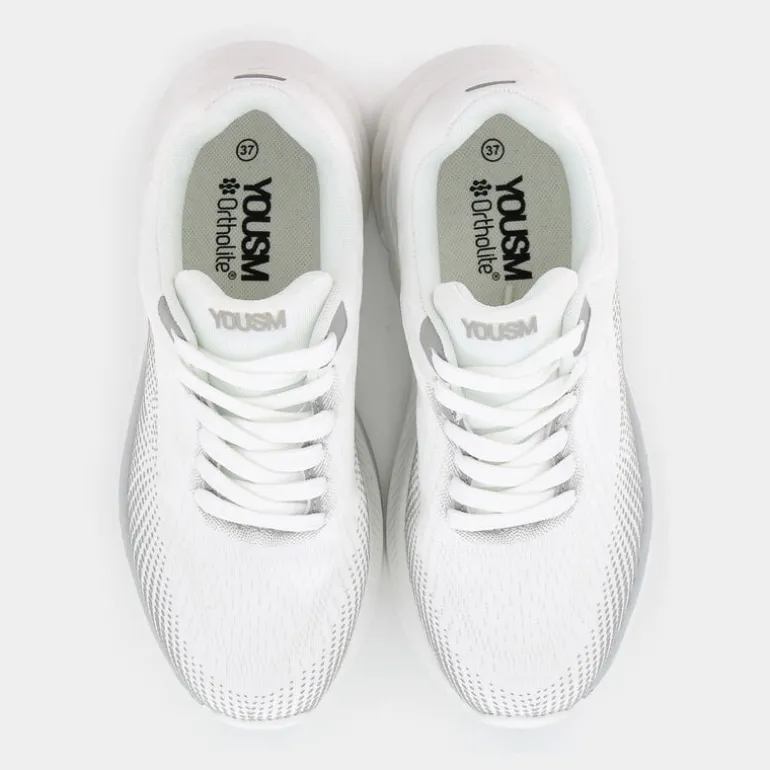Innovazione e sostenibilità si fondono nelle scarpe sportive da donna Yousm, concepite per il massimo comfort tecnico durante le sessioni di allenamento. Queste scarpe presentano un design total white che le rende perfette per ogni occasione sportiva, mantenendo uno stile moderno e accattivante. Costruite con materiali sostenibili, come la fodera, i lacci e il sottopiede in PET riciclato, abbracciano l’ethos Eco Amico® senza sacrificare la performance. Il sottopiede dotato di tecnologia OrthoLite® garantisce ammortizzazione e supporto duraturi. Per un look sportivo e casual, abbinale a leggings aderenti e una maglia tecnica in tonalità pastello. Vivaci e funzionali, queste scarpe sono il compagno ideale per le amanti dello sport.