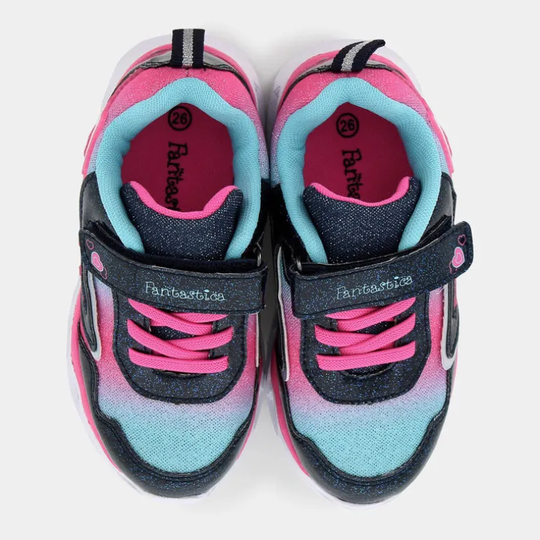 Energizza le giornate di tua figlia con queste sneaker Fantastica. Questo modello sportivo è caratterizzato da un design moderno e divertente, con dettagli di una stella brillante per un tocco glamour. Il sistema di chiusura con velcro e laccio elastico le rende incredibilmente pratiche per le piccole avventuriere sempre in movimento. La fodera e il sottopiede in PET riciclato dimostrano che eleganza e sostenibilità possono andare di pari passo. La suola con luci integrate aggiunge un tocco extra di divertimento e stile. Queste sneaker Eco Amico® sono perfette per completare un look casual con jeans e una maglietta colorata, ma si adattano facilmente anche a un abitino sportivo per le uscite all’aperto.