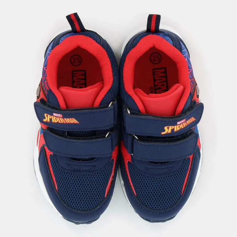 Accendi la giornata del tuo piccolo con queste scarpe sportive SPIDERMAN blu, perfette per il tempo libero. Dotate di un design accattivante con il tema di Spiderman, conquisteranno subito i più piccoli. Grazie al doppio velcro, indossarle sarà un gioco da ragazzi, garantendo una calzata facile e sicura. La caratteristica speciale di queste sneaker è la suola e la tomaia con luci che si illuminano ad ogni passo, creando un effetto davvero sorprendente e divertente. Ideali da abbinare a un look casual, queste scarpe possono essere portate con jeans o pantaloni sportivi per un mix di stile e comfort perfetto per ogni avventura. Un equilibrio perfetto tra funzionalità e fantasia!