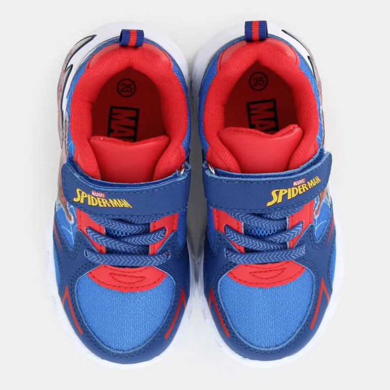 Supera ogni avventura quotidiana con le scarpe sportive ispirate all’iconico Spiderman, progettate per energizzare il look dei più piccoli con un tocco di divertimento. Queste sneakers blu, dotate di pratico velcro e laccio elastico, assicurano una calzata comoda e sicura per i bambini sempre in movimento. La caratteristica speciale di queste scarpe è la suola dotata di luci, che illumina ogni passo con allegria e stile. Ideali per il tempo libero e le passeggiate in città, queste scarpe completano un outfit casual con jeans e una t-shirt colorata. I piccoli fan dell’Uomo Ragno troveranno queste scarpe irresistibili per aggiungere un pizzico di magia alle loro giornate. Quando il comfort si unisce all’allegria, il divertimento è assicurato!