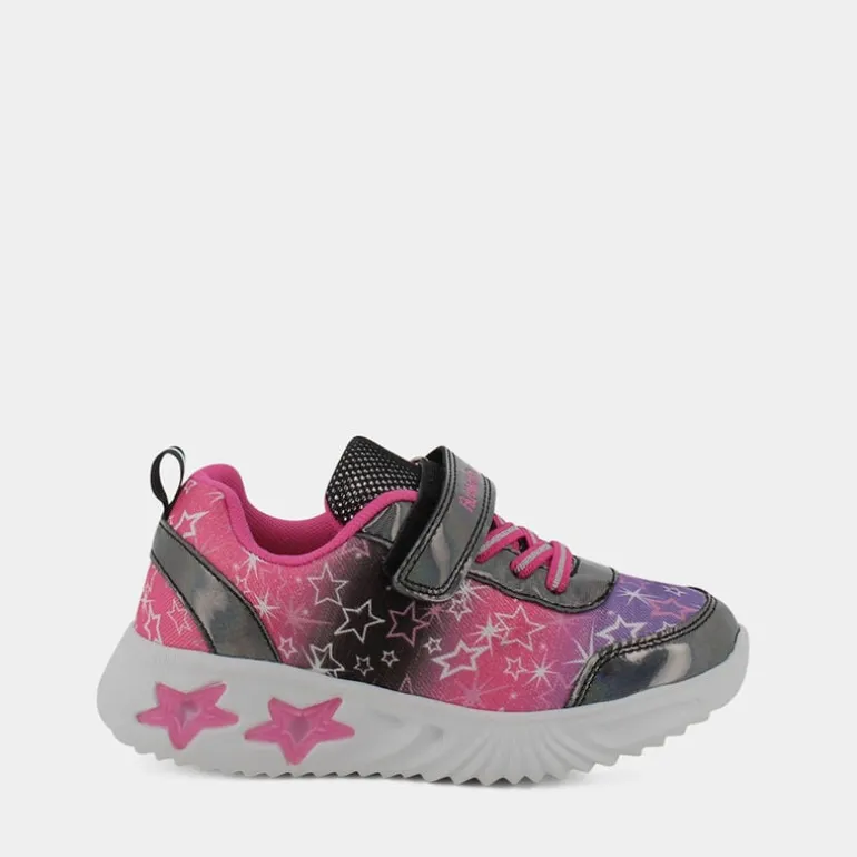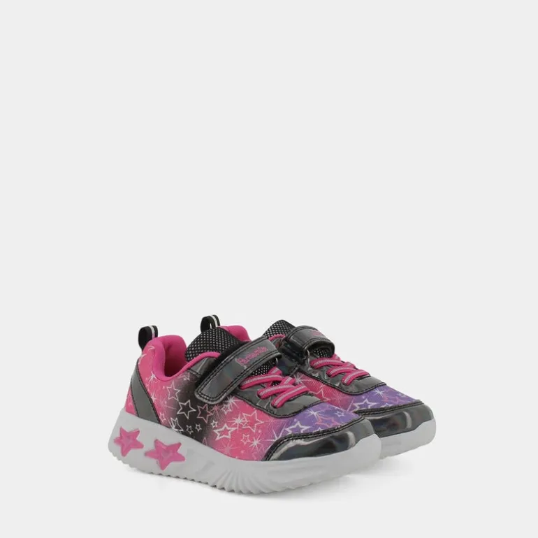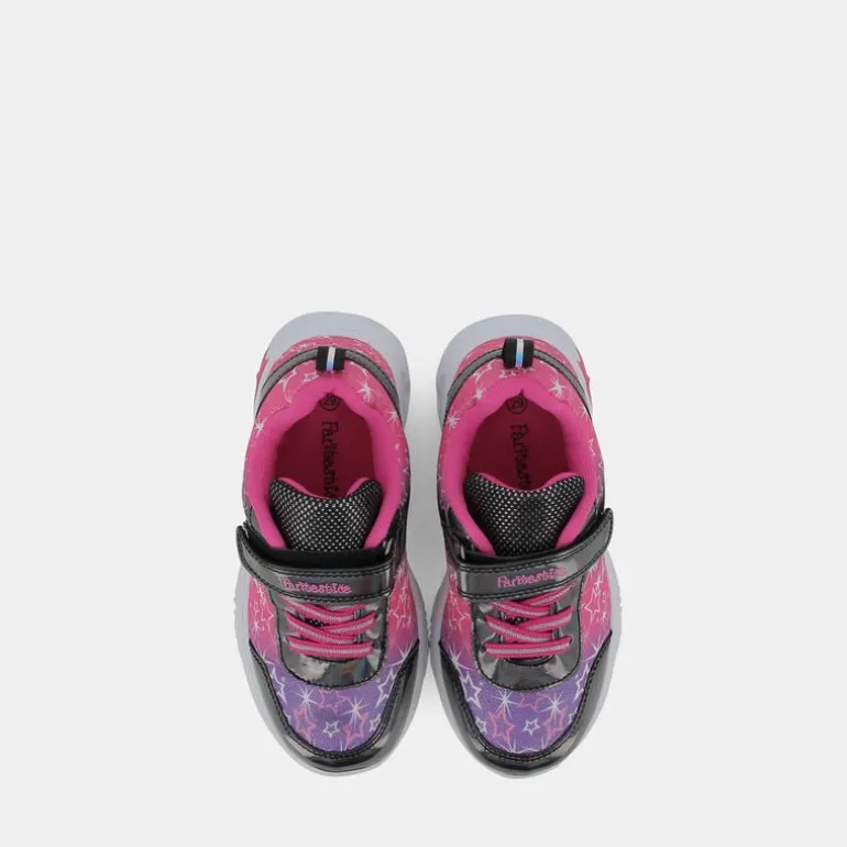 Queste sneaker da bambina, a marchio Fantastica di proprietà Scarpamondo, sono realizzate con fibre riciclate al 100%. Le luci integrate nella suola le rendono perfette per un look da vera star
