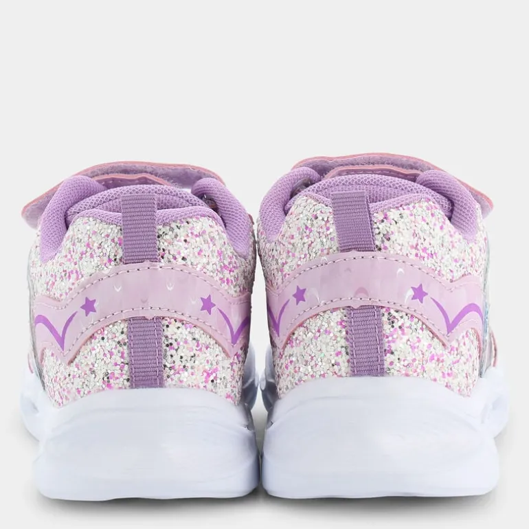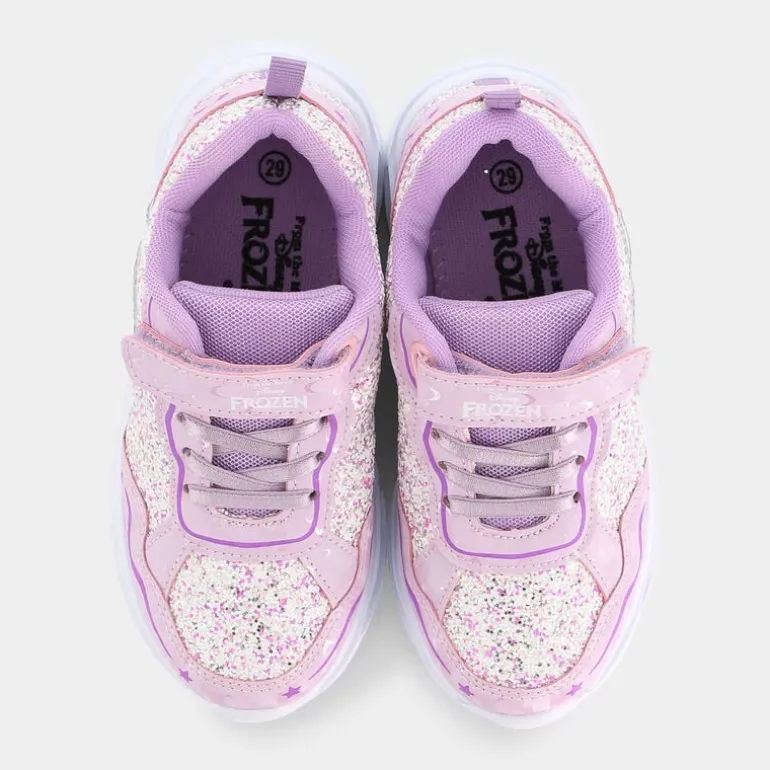 Le scarpe sportive da bambina con i personaggi di Frozen sono la scelta giusta per intraprendere divertenti nuove avventure, sempre accompagnata dalla regina Elsa e dalla principessa Anna! Sarà luce ad ogni passo grazie alle luci integrate nella suola. L’allacciatura è facile e perfettamente regolabile grazie alla presenza di stringhe e dalla chiusura a strappo. La suola è scanalata e antiscivolo. Queste scarpe sono leggere e confortevoli, con una morbida imbottitura sul collarino in corrispondenza della caviglia. Per la tomaia di questo modello sono state scelte le sfumature del lilla e del rosa, con tante delicate decorazioni e Anna ed Elsa sul lato. Il sottopiede in tessuto, morbido e traspirante, rende queste scarpe perfette per ogni attività del tempo libero.