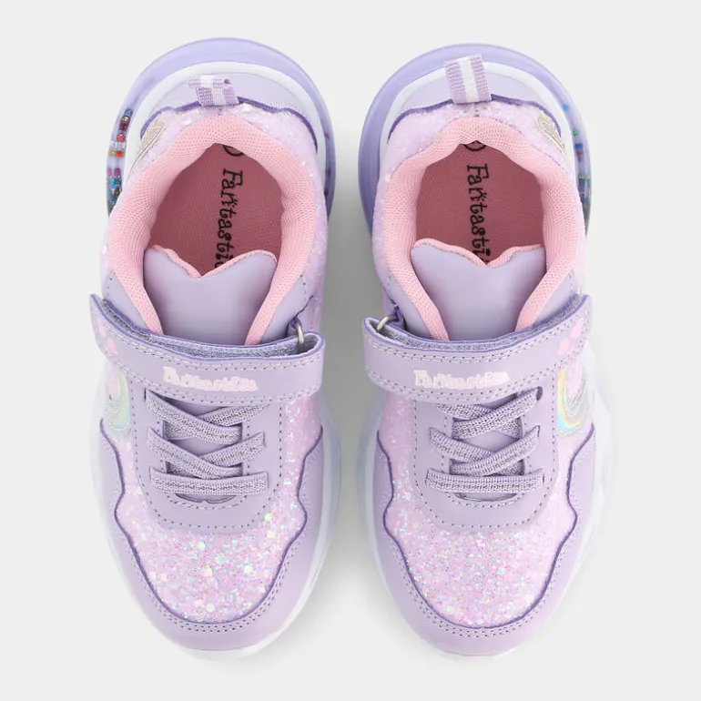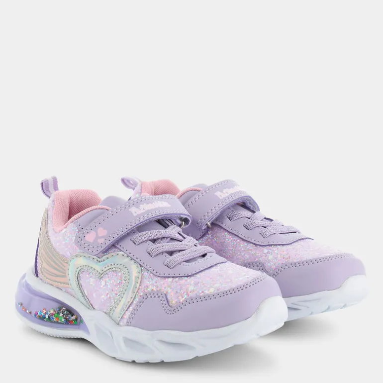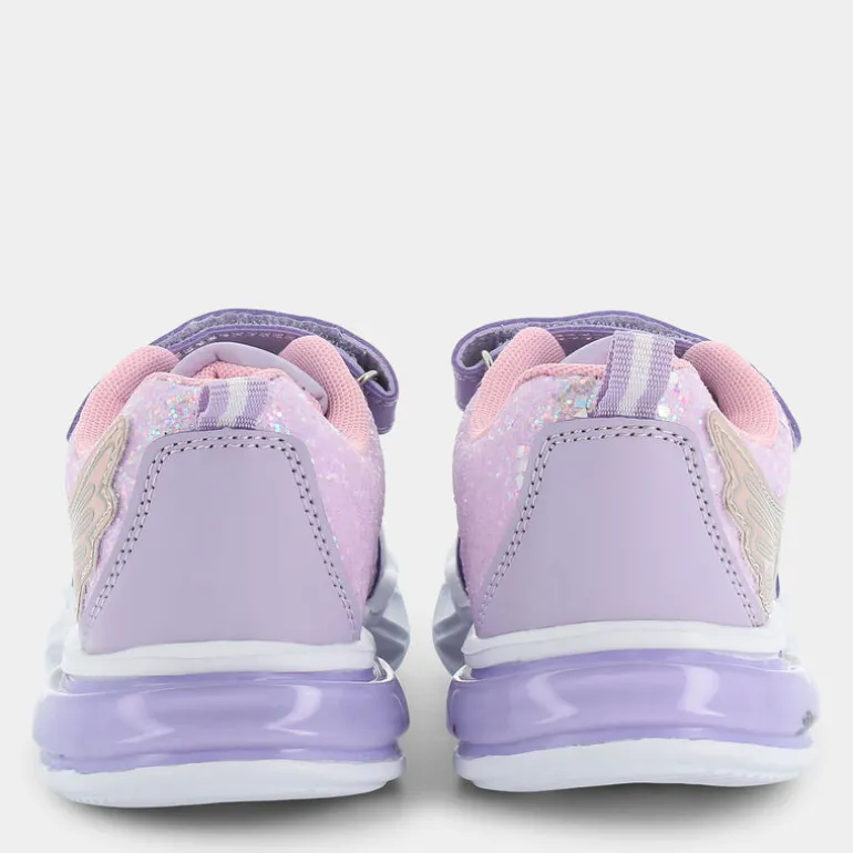 Fantastica è una sneakers da bambina che ben si adatta al tempo libero. Realizzata con le tecnologie della linea Eco Amico, questa scarpa ecosostenibile ha il sottopiede e la fodera in poliestere riciclato al 100%. Grazie alla suola prodotta in materiali espansi, queste calzature risultano molto comode e garantiscono un comfort ideale durante la camminata. Disponibili in varie numerazioni, la doppia chiusura con lacci e fascia a strappo assicura sicurezza e stabilità in tutte le occasioni della giornata. Di colore lilla e con bellissime decorazioni sulla tomaia, i glitter presenti nella parte superiore della suola danno un tocco trendy al design di queste sneakers. Infine, Fantastica è adatta a tutti i tipi di outfit, da quelli più sportivi a quelli con gonne, pantaloni e camicia , ed è possibile indossarla durante tutti i giorni dell’anno.