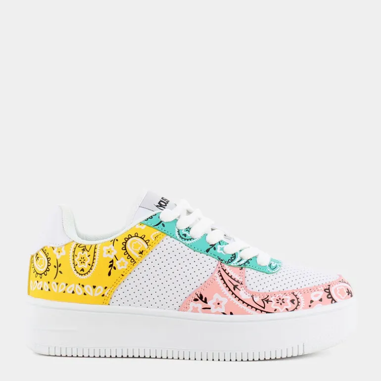 Le scarpe sportive da donna YOUSM sono un connubio perfetto tra funzionalità e stile. Il loro design caratterizzate da un vivace pattern multicolore ispirato alla fantasia bandana è unico e distintivo, che cattura l’attenzione e si fa notare per la sua vivacità. La tomaia traspirante e la suola in gomma antiscivolo le rendono perfette per l’attività di tutti i giorni, mentre l’imbottitura interna offre un comfort eccezionale. Queste scarpe sono un’ottima scelta per chi vuole distinguersi con un look sportivo e alla moda, senza rinunciare al comfort e alla funzionalità. In aggiunta, queste sneakers hanno una componente ecologica poiché sia la fodera che il sottopiede sono realizzate al 100% con materiali riciclati e certificati, che ne garantiscono rispetto dell’ambiente anche nella loro produzione.
