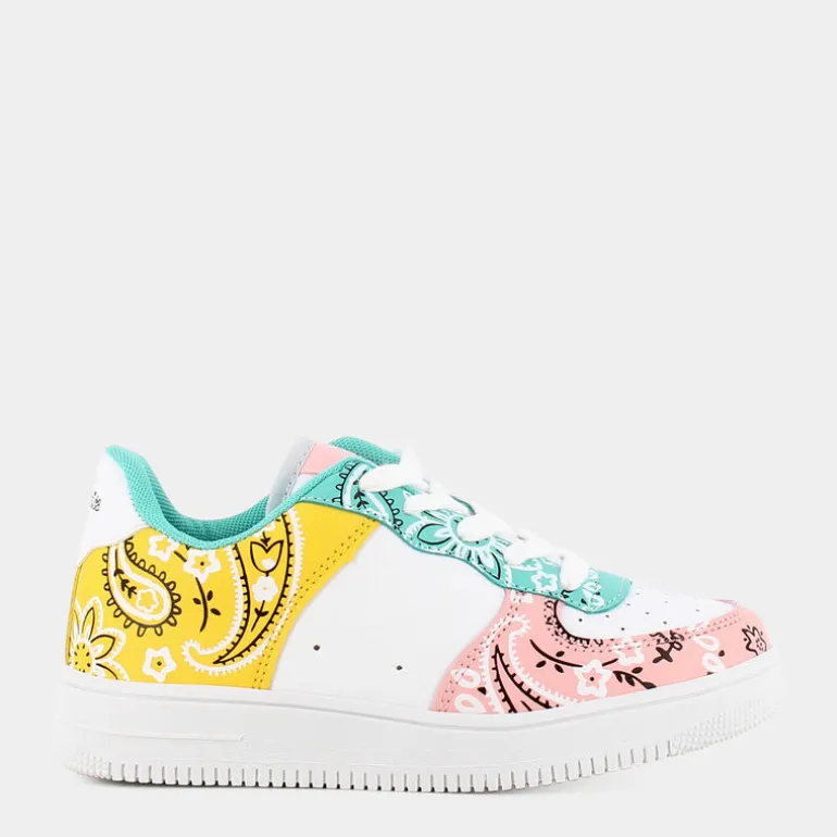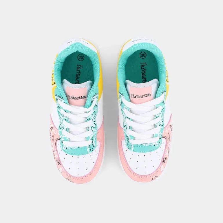 Le scarpe sportive da bambina Fantastica sono una vera e propria esplosione di colore. Pensate per un look glamour senza rinunciare alla comodità. Adatte sia per le attività all’aria aperta che per un uso di tutti i giorni. La stampa "bandana print" conferisce alle scarpe Fantastica un tocco glam per restare al passo con le ultime tendenze della moda primavera estate. Le scarpe Fantastica pensano anche all’ambiente e il loro carattere "Ecoamico" si esalta nella composizione dei materiali della fodera interna e del sottopiede della scarpa: realizzati con materiali riciclati al 100% e certificati.