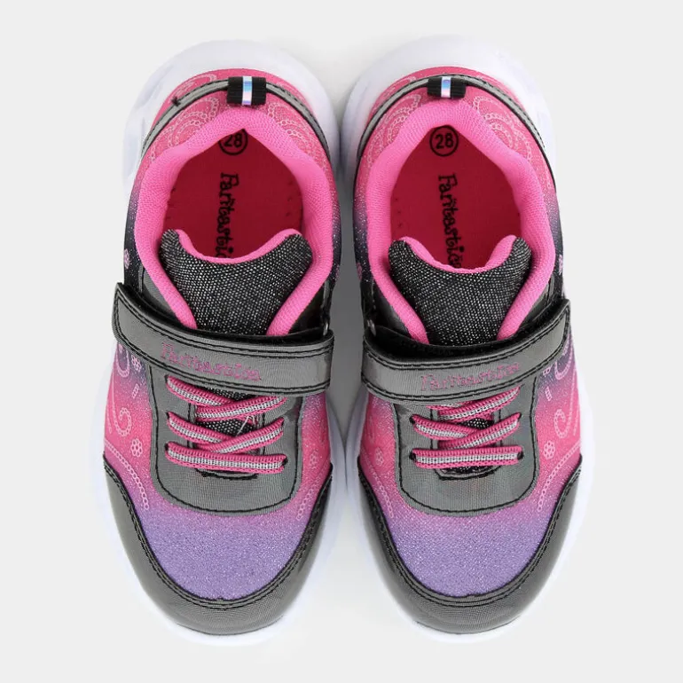 Scegli l’essenza dello sport con le sneaker Eco Amico® di Fantastica per bambina, irresistibili nel loro stile moderno e accattivante. Rivestite in PET riciclato, sono studiate per il massimo comfort e sostegno durante il tempo libero. Queste scarpe innovative sono dotate di una fodera e di un sottopiede in PET, garantendo un’impronta ecologica. La suola con luci integrate aggiunge un tocco di magia a ogni passo, rendendole ideali per le giovani esploratrici. Il design è arricchito da dettagli emozionanti come i cuori, la scritta "LOVE" e decorazioni con brillantini e perline. Perfette per un look casual, queste sneaker si abbinano splendidamente a jeans, gonne o pantaloni in felpa, completando ogni outfit con stile e funzionalità.