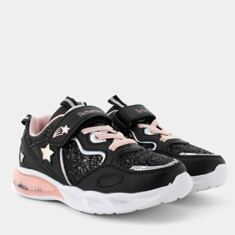 Porta una scintilla di magia in ogni passo con queste incredibili sneakers Fantastica. Con un design nero elegante, queste scarpe sono arricchite da brillanti dettagli a forma di stella e cuore, e un’aria visibile con luci che aggiungono un tocco di fascino e molta allegria. Progettate con un pratico velcro e laccio elastico, sono facili da indossare e rimuovere, perfette per le piccole avventuriere. La fodera e il sottopiede in PET riciclato le rendono un’opzione Eco Amico®. La suola illuminata rende ogni passo una festa! Abbinale a leggings e una maglietta colorata per un look da tempo libero che non passerà inosservato. Scegli queste sneakers per una combinazione perfetta di stile, comfort e divertimento.