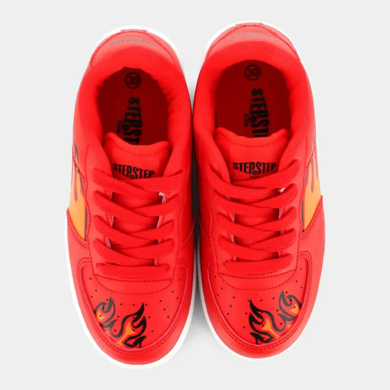 L’animo grintoso e il carattere sostenibile si fondono in queste scarpe sportive da bambino firmate Step By Step, realizzate nel totale rispetto delle regole previste nel progetto Eco Amico nato per preservare la natura mediante pratiche di produzione non inquinanti e l’utilizzo di materiali riciclabili. Fodera e sottopiede, infatti, hanno una composizione di PET pari al 100%. Il design accattivante della calzatura è dato dalla comoda tomaia in sintetico di colore rosso dove delle fiamme sembrano avvolgere la punta ergonomica e la parte laterale. Il battistrada in gomma anti scivolo garantisce la massima aderenza al terreno e le piccole scanalature della suola permettono una camminata fluida anche su terreni sconnessi. Pensate per il tempo libero, queste scarpe sono perfette per la scuola, da abbinare con look sportivi e casual possono dare un tocco estroso a look eleganti.