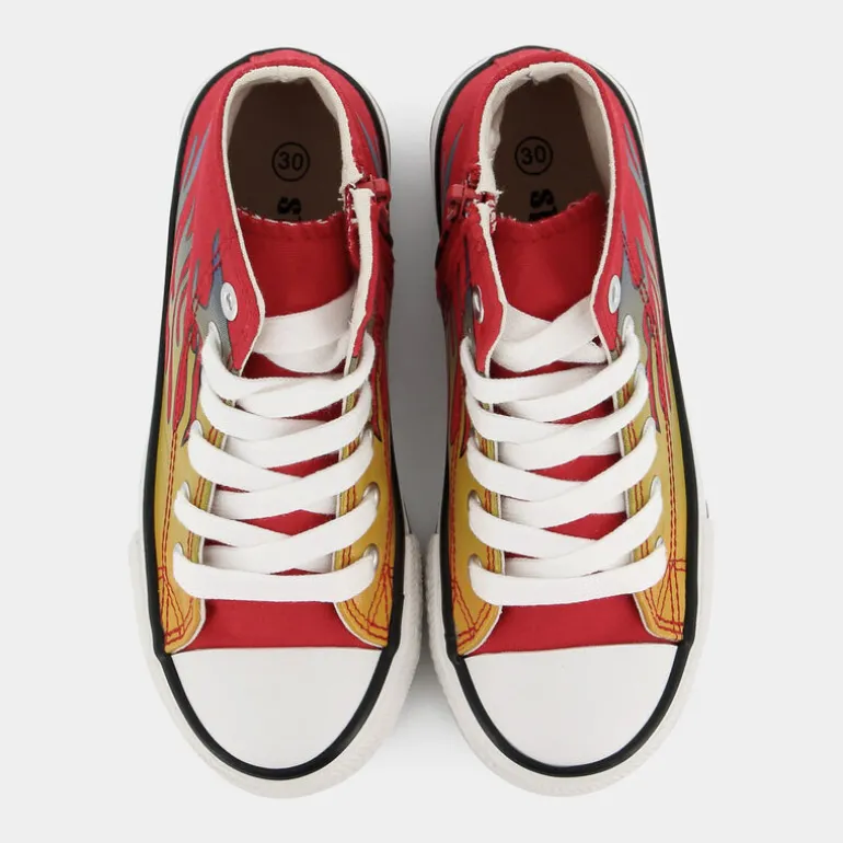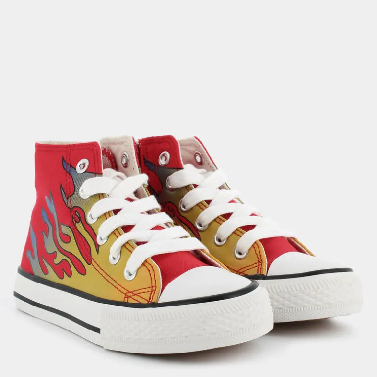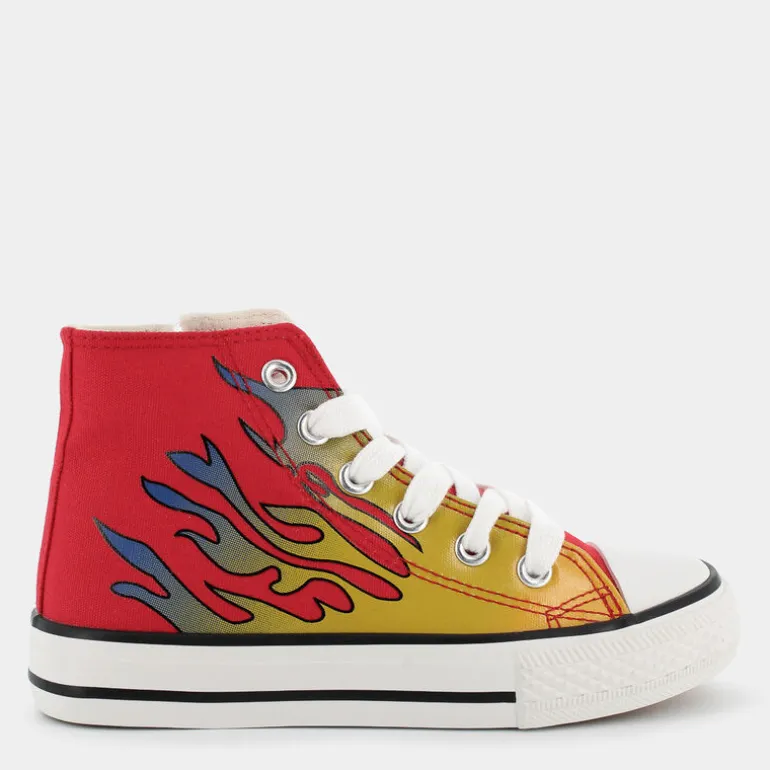 Le sneakers Step By Step per bambino brillano di un energico rosso, promettendo di infiammare il tempo libero con sprint e vitalità. Il design audace, caratterizzato da una decorazione a fiamme, cattura immediatamente l’attenzione, rendendo queste scarpe l’accessorio perfetto per ogni giovane avventuriero che desidera distinguersi. Il fascino estetico va di pari passo con l’impegno per l’ambiente: ogni elemento, dalla fodera ai lacci, dal sottopiede alla tomaia, è realizzato in materiali riciclati. Questa scelta Eco Amico® sottolinea una consapevolezza esclusiva, offrendo una calzatura non solo esteticamente accattivante ma anche eticamente avanzata. Il trattamento vulcanizzato assicura inoltre resistenza e durabilità.Perfette con jeans e magliette grafiche per un look quotidiano che non passa inosservato, queste scarpe sono ideali per chi vuole lasciare il segno.