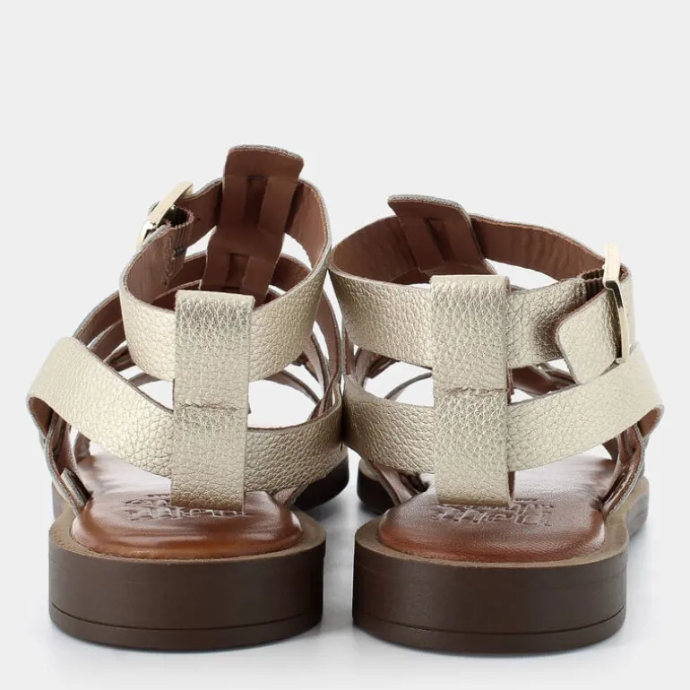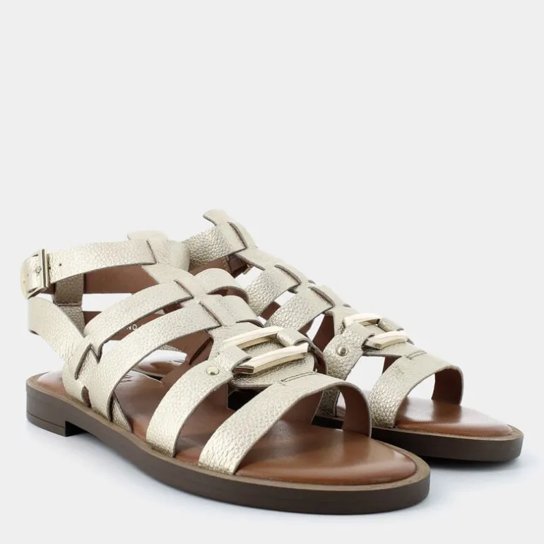Brilla sotto il sole estivo con questi straordinari sandali oro firmati Patti Di Luna. La loro caratteristica principale è l’attenzione all’ambiente, essendo parte della linea Eco Amico®. Realizzati interamente in pelle sostenibile, presentano una tomaia, una fodera e un sottopiede che avvolgono il piede in un abbraccio di lusso sostenibile. Con un design a sandalo ragno adornato da fibbie decorative, questi sandali offrono uno stile casual ma sofisticato. Il tacco di 2 cm aggiunge un tocco di eleganza, mantenendo il comfort per l’uso quotidiano. Per un look estivo perfetto, abbinali a un abito leggero in lino o a pantaloni capri per un mix di raffinatezza e semplicità. Lasciati affascinare dall’eleganza eco-sostenibile che ridefinisce il tuo stile.