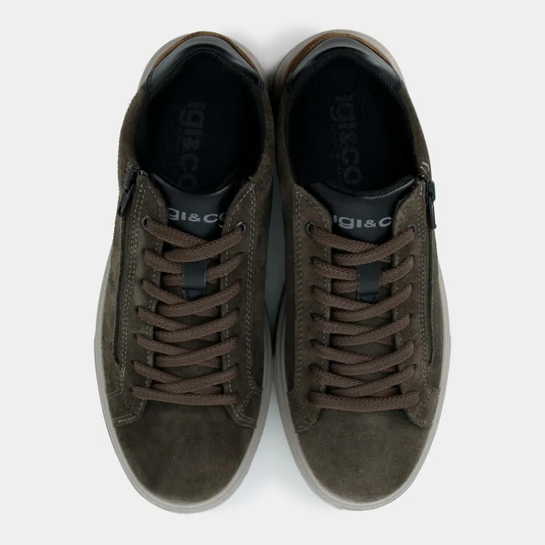Le Sneakers di IGI & CO. sono un’accattivante fusione di stile e comfort, perfette per ogni occasione casual. Realizzate in pelle di alta qualità, presentano un originale design con dettagli in scamosciato e chiusura zip, che garantisce praticità e un tocco di carattere. L’interno è rifinito in pelle e tessuto, assicurando traspirabilità e morbidezza. La soletta in pelle offre un’ottima ammortizzazione, rendendo queste sneakers ideali per lunghe passeggiate in città. Queste sneakers si abbinano splendidamente a pantaloni chinos e una camicia casual, per un look moderno e sofisticato. Un prodotto made in Italy che incarna eleganza e qualità artigianale, proiettando il tuo stile verso nuove vette.