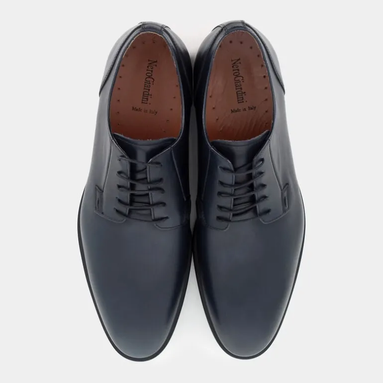 Eleganza e sofisticatezza si fondono perfettamente nelle stringate "Nero Giardini", una scelta ideale per il moderno uomo cosmopolita. Queste scarpe derby, interamente realizzate in Italia, esprimono raffinatezza attraverso l’uso di pelle blu di alta qualità che avvolge sia l’esterno che l’interno della calzatura. La soletta in pelle garantisce un comfort assoluto per chi le indossa, rendendole perfette per occasioni eleganti o cerimoniali. Con un tacco che innalza il livello dell’eleganza, queste stringate sono più di un semplice accessorio: sono un vero e proprio simbolo di stile. Perfette se abbinate a un completo elegante o un abito su misura, esaltano qualsiasi look formale, garantendo sempre il massimo impatto in termini di stile e classe.