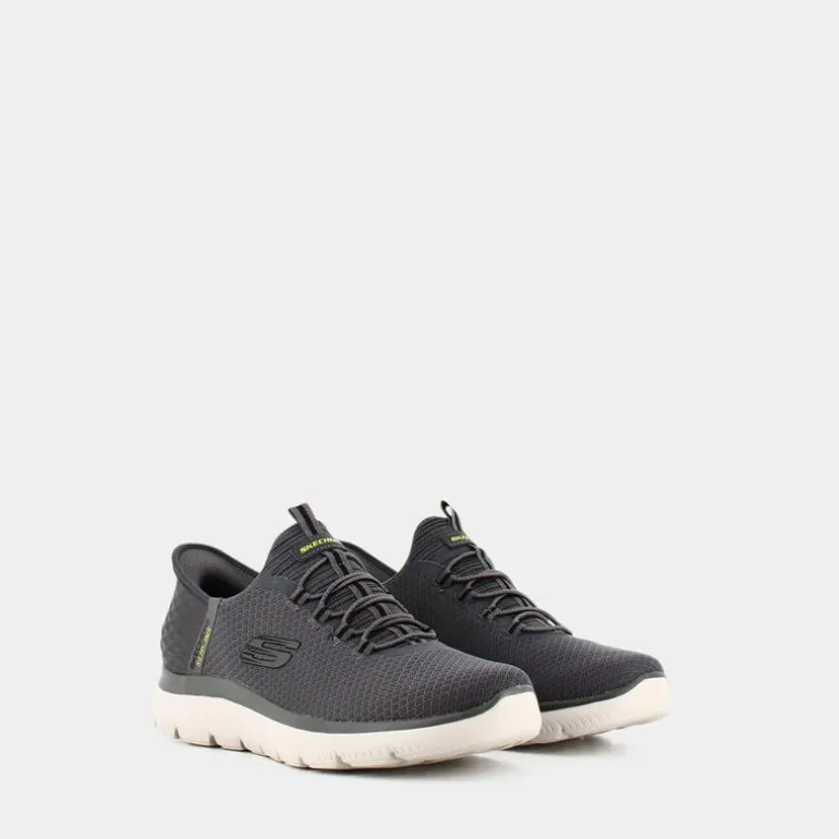 Le scarpe da uomo Skechers dispongono di tecnologia Memory foam sul sottopiede, ovvero di una schiuma a base di poliuretano al loro interno, il che le rende particolarmente comode e confortevoli, anche per lunghe passeggiate o per fare jogging. Queste calzature sono quindi perfette per un uso sportivo. Con la loro colorazione grigia e dettagli bianchi hanno un aspetto neutro, sobrio e per nulla impegnativo, dunque si adattano perfettamente con qualsiasi tipologia di outfit sportivo e da tutti i giorni. Puoi indossarle, ad esempio, con un bermuda e una maglietta durante le lunghe giornate estive, con una tuta durante l’attività fisica oppure con un paio di jeans, per un effetto leggermente meno casual.
