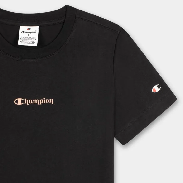Libera la tua energia con questa t-shirt a maniche corte CHAMPION, un capo essenziale nel guardaroba di ogni donna sportiva. Realizzata in tessuto di qualità superiore, 100% cotone, assicura una vestibilità slim che aderisce delicatamente al corpo esaltando la tua silhouette. Perfetta per affrontare le tue sessioni sportive con stile, la t-shirt nera è caratterizzata da un classico scollo tondo, ideale per garantire comfort durante ogni movimento. La sua semplicità rende questa t-shirt versatile, adattabile sia ad outfit sportivi sia ad abbinamenti più casual, rendendola un must-have per ogni occasione. Lasciati conquistare dal perfetto equilibrio tra funzionalità e design, per sentirti sempre al top in qualsiasi attività.