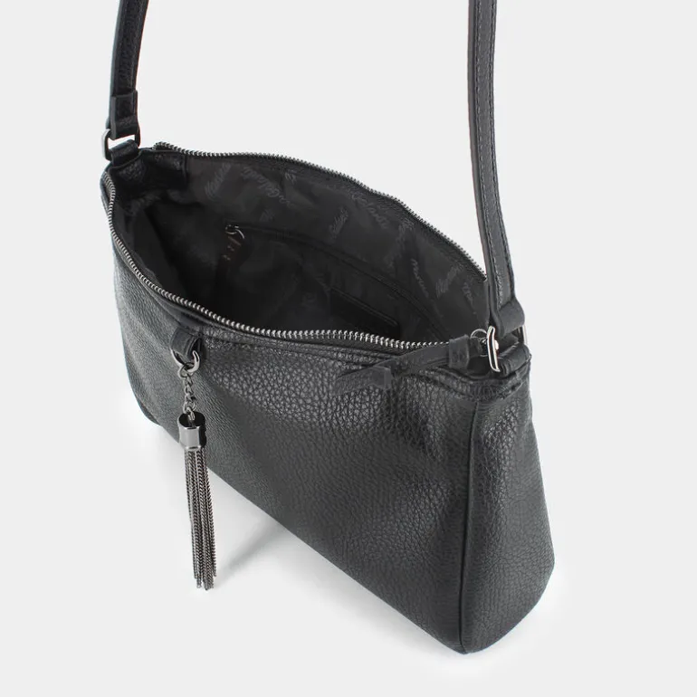 Eleganza e praticità si uniscono nella tracolla firmata Marina Galanti, un alleato perfetto per il tuo look casual quotidiano. Il colore nero dona raffinatezza e versatilità, rendendola adatta a qualsiasi abbinamento. Con dimensioni di 28×28 cm e un’ampiezza di 6 cm, offre lo spazio ideale per custodire i tuoi effetti personali senza risultare ingombrante. Il manico lungo di 55 cm permette di indossarla comodamente a spalla, garantendo libertà di movimento. Dotata di chiusura a lampo in testa, assicura sicurezza e facilità di accesso. Il dettaglio del pendaglio aggiunge un tocco di stile distintivo. Perfetta per accompagnarti nelle tue giornate indaffarate, senza mai rinunciare a eleganza e funzionalità.