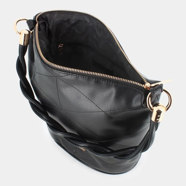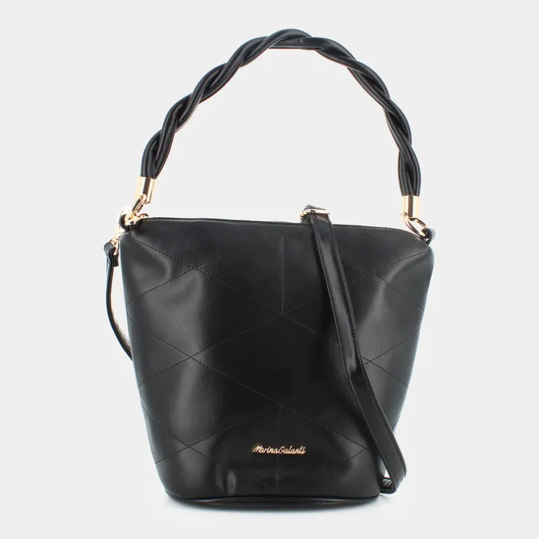 Eleganza e funzionalità si incontrano in questa borsa a tracolla firmata Marina Galanti, perfetta per l’uso casual e ideale per la donna contemporanea. Con il suo raffinato design a secchiello nella tonalità nera, questa borsa si distingue per la lavorazione a rombi che dona un fascino sofisticato e unico. Il manico intrecciato e gli anelli metallici aggiungono un tocco di stile ed eleganza. Sul fronte, il logo metallico sottolinea un’impronta di classe e distinzione. Con dimensioni di 26x30x13 cm, offre ampio spazio per organizzare i tuoi effetti personali. Ideale per un look casual o per una giornata fuori, questa borsa è un accessorio versatile che completa ogni outfit con un tocco chic ed elegante.