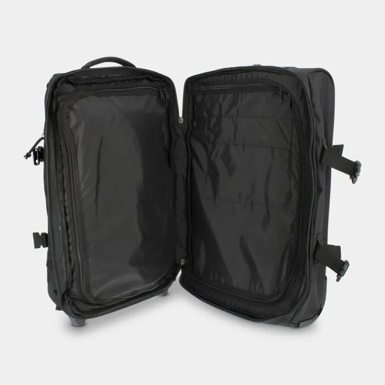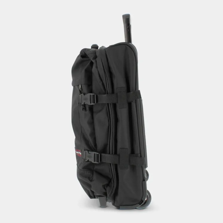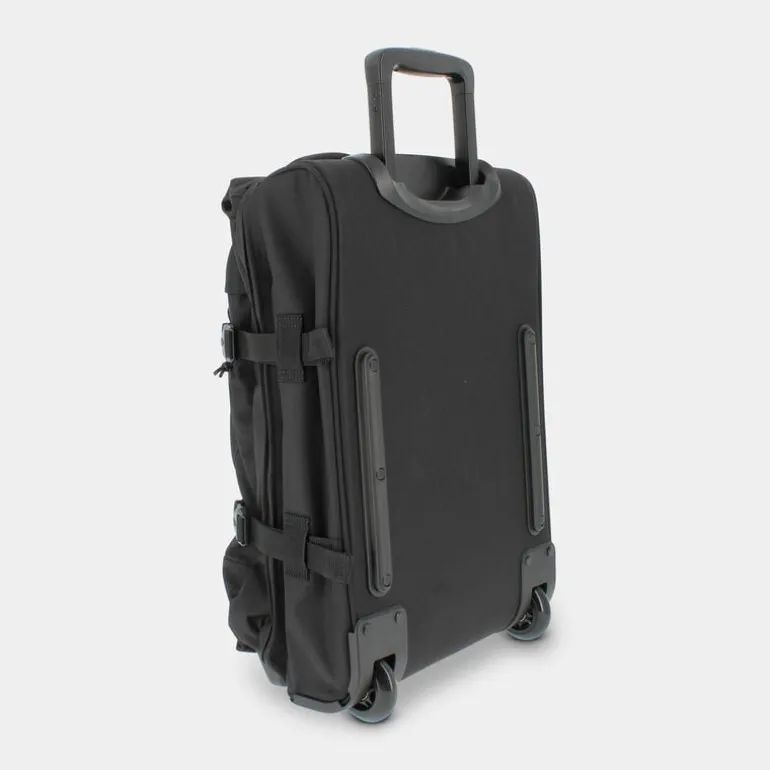 Trolley Eastpak nella versione piccola: soli 2,4 kg di peso per oltre 40 lt di divertimento, tutti racchiusi in uno zaino trasportabile dal design ridotto e compatto. Total black, ha un look grintoso e sportivo, per chi desidera un mood più sobrio. Le linee pulite ed essenziali consentono a questo accessorio di rientrare in qualsiasi tipologia di outfit, dall’uniforme militare, fino al completo maschile giacca e cravatta dell’uomo d’affari sempre in movimento. Il trolley Eastpak è dotato di ampia e spaziosa tasca centrale con cerniera zip, e di cinghie laterali a compressione che tengono il bagaglio in ordine. Le rotelle sono protette da piedini in plastica, mentre i tessuti sono robusti e resistenti, anti-strappo.