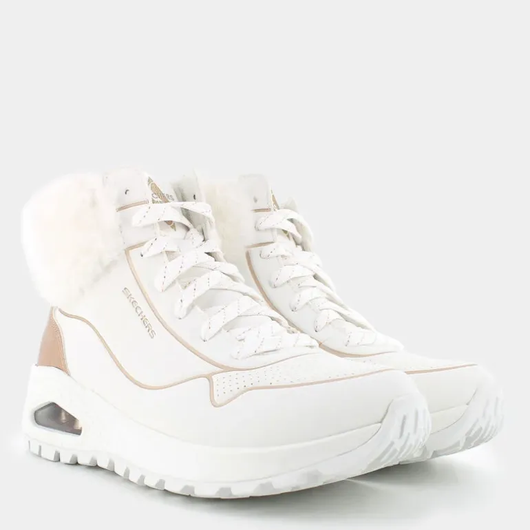 Esplora lo stile casual chic con gli scarponcini bianchi di Skechers, perfetti per affrontare la stagione fredda in grande stile. Il design moderno con zeppa di 6 cm li rende ideali per un look che mixa comfort e tendenza. Sono pensati per affrontare le giornate più fredde grazie all’eccezionale sottopiede in Memory foam, che assicura un comfort senza pari. Questi scarponcini con dettagli "all white" traendo ispirazione dalle nevicate. Abbinali a un paio di jeans skinny o una gonna in lana e una giacca oversize per un outfit che conquista. Perfetti per essere sfoggiati nel cuore della città o in un’escursione in montagna, questi scarponcini dimostrano che la moda incontra il comfort in un unico passo.