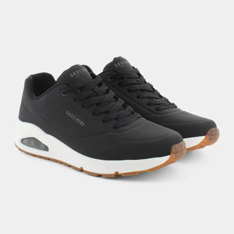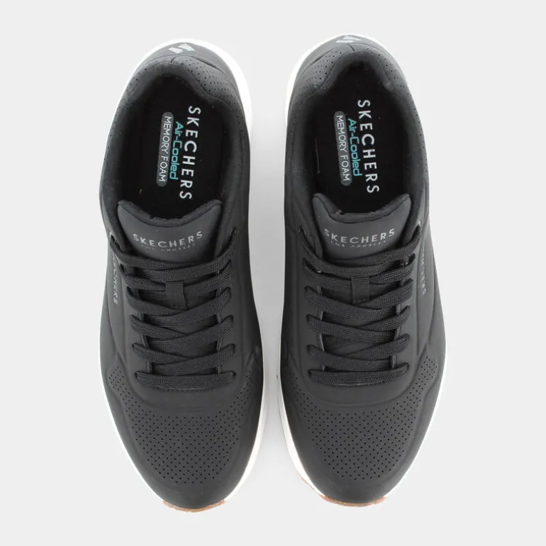 Sneaker stringata di tendenza, ideale per l’utilizzo quotidiano grazie al suo look classico unito al comfort della soletta in Air-Cooled Memory Foam® e all’intersuola ad aria visibile ammortizzata Skech-Air®