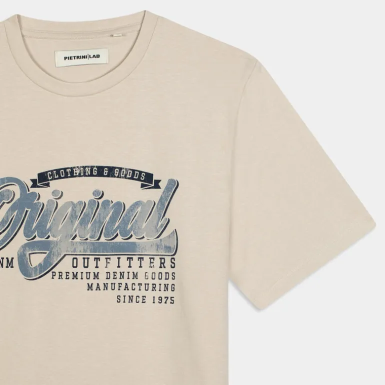 Scopri il fascino semplice e raffinato della T-Shirt da uomo color beige di Pietrini Lab. Realizzata al 100% in cotone, questa t-shirt offre una sensazione di comfort ineguagliabile grazie al suo tessuto morbido e traspirante. Progettata con una vestibilità regular, si adatta perfettamente a ogni tipo di corporatura, garantendo libertà di movimento in ogni situazione. Il design sobrio è arricchito da uno scollo tondo e da maniche corte, che conferiscono un tocco di contemporaneità senza tempo. Ideale per un look casual e rilassato, questa t-shirt è perfetta per abbinamenti con jeans o pantaloni chinos e una giacca leggera, completando il tuo stile con naturalezza ed eleganza. Rinnova il tuo guardaroba con una scelta di stile e comodità.