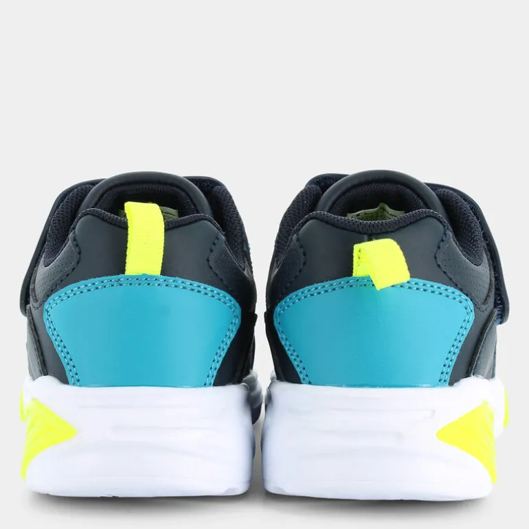 Le scarpe sportive firmate da Champion sono perfette per la vita quotidiana e per trascorrere il tempo libero. Le luci installate nella suola, inoltre, rendono queste sneakers divertenti e giocose anche dopo il tramonto. La struttura delle scarpe comprende punta arrotondata, tomaia blu scuro, impunture tono su tono, pannelli colorati a contrasto sul davanti e sul retro, chiusura frontale con lacci piatti, chiusura superiore logata con strappo, linguetta imbottita e suola in gomma. Sul lato della scarpa è ben visibile il logo Champion, mentre sul retro, all’altezza della caviglia, troviamo due comode linguette pull-on, utili per agevolare l’inserimento del piede. Queste scarpe sportive si abbinano facilmente a moltissimi capi d’abbigliamento, sportivi e casual, assicurando ai più piccoli ore di divertimento.